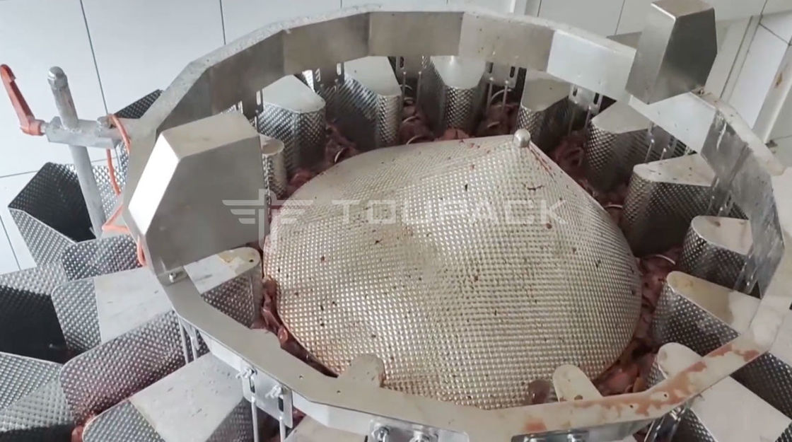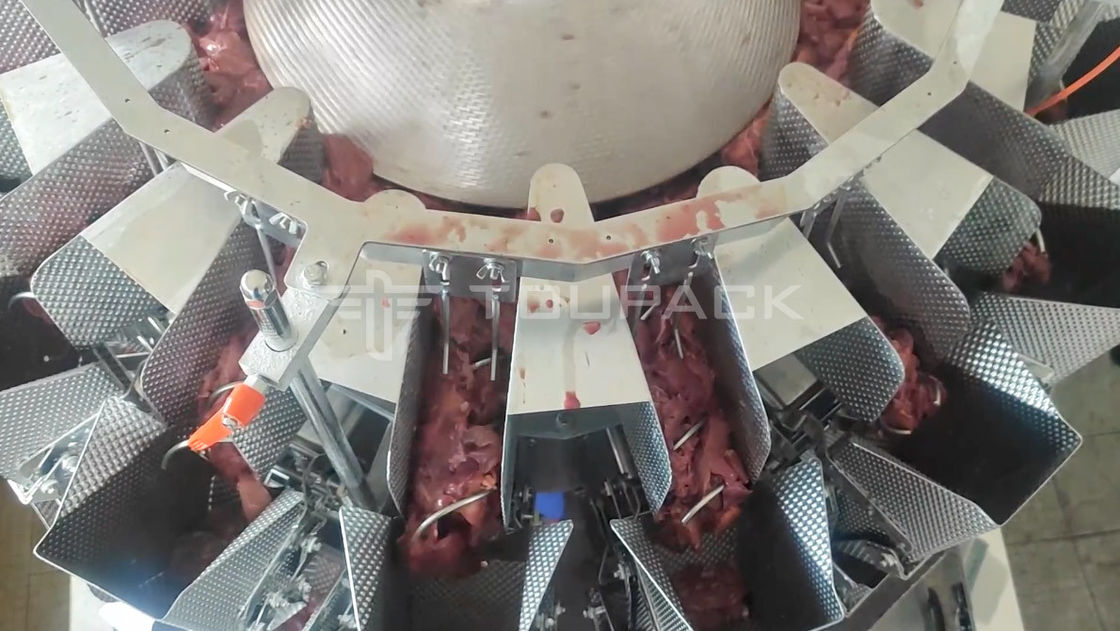 La pesatrice multi-testa Toupack Sticky Material è una soluzione affidabile ed economica per la pesatura di materiali appiccicosi come i fegati di pollo.È realizzato in acciaio inossidabile di alta qualità ed è dotato di un display touch screen, sistema di azionamento servomotore e una precisione di ± 0,2-1,0 g. È certificato CE e ISO 9001 e ha un consumo di potenza di 1,5 kW.